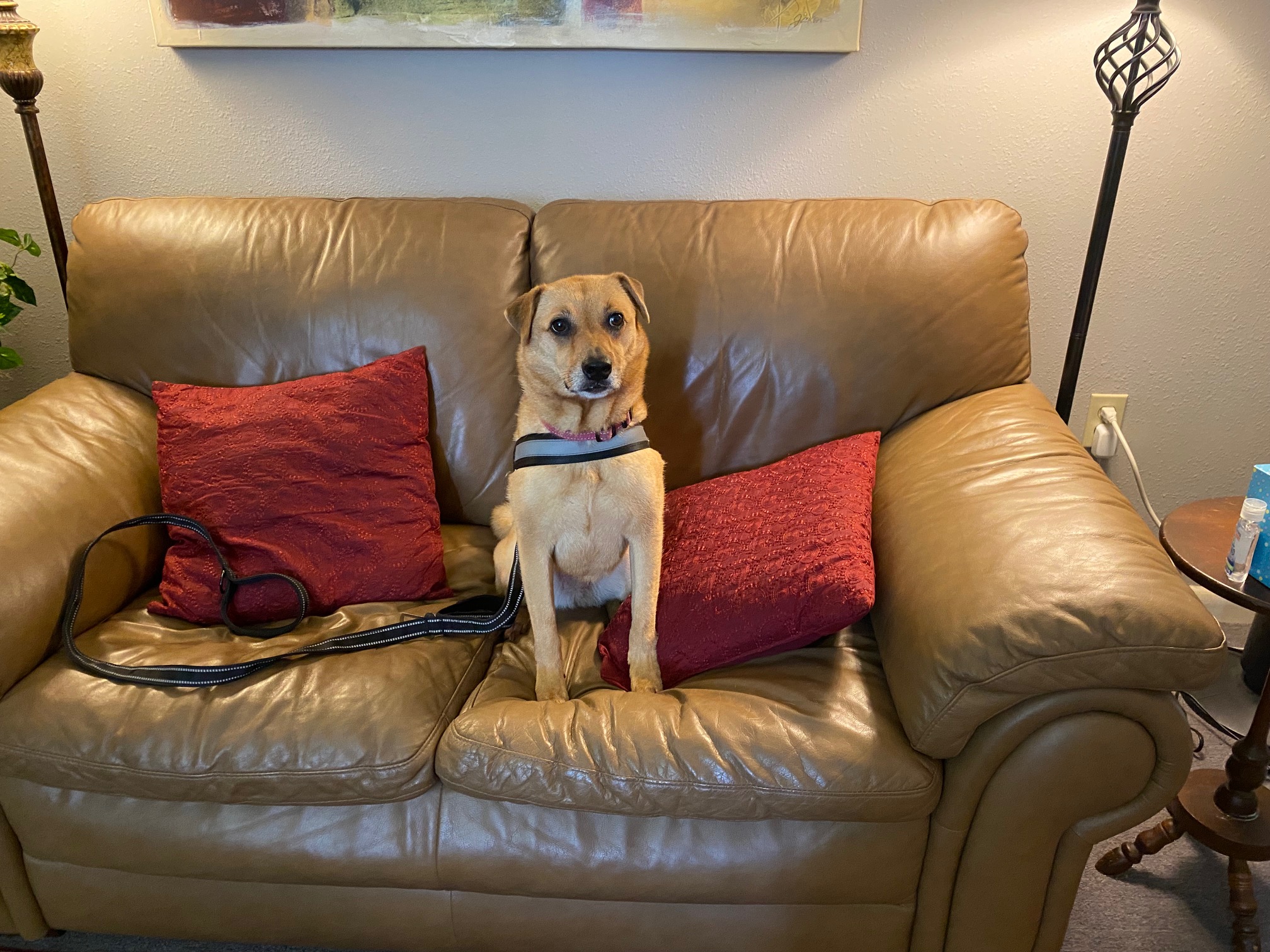 When she meets a new client, Daisy is to sit and wait. The client can then choose to extend their hand towards her, and once Daisy sniffs or touches the hand with her nose, it is ok to pet and interact with her. Daisy is always wearing a harness while working in my office. I have a leash for her which doubles as a seat belt, and she has a dog bed in my office. Clients are welcome to give her treats (we keep plenty of treats in the office). Should Daisy get a little persnickety, which is incredibly rare, I can easily escort her into another space. We all have our off days, and dogs are no different. I do keep close watch on her, even though she’s been seeing clients for nearly seven years, she is an animal, and I take great precautions in having an animal in my office. Of course if someone does not want her on site, or in their appointment, that’s absolutely no problem! She does not come with me to the office every day. She is only present when requested by those I work with. Sometimes, due to extenuating circumstances I cannot always have her in the office when requested, but I do everything within my power to have her there when people would like.